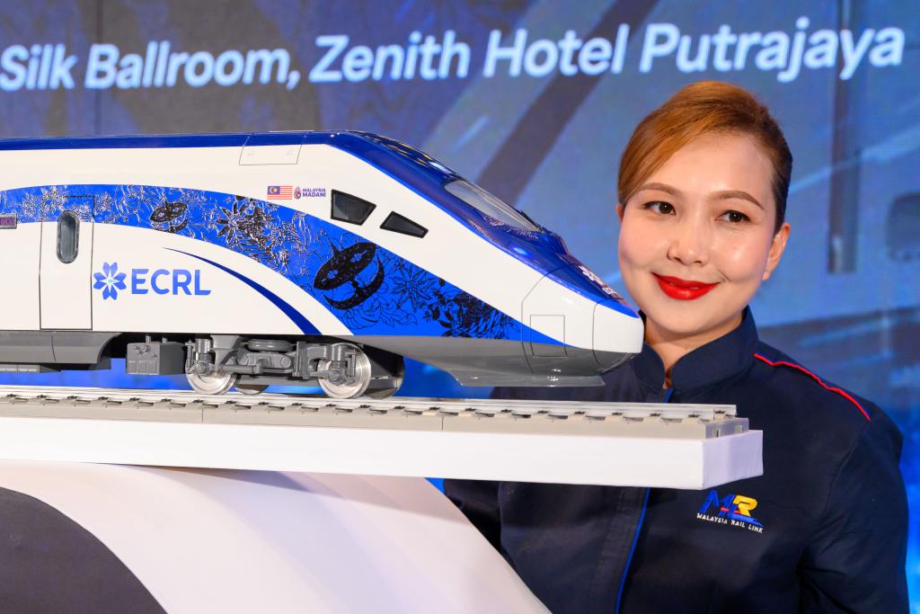 12月18日,在馬來西亞普特拉賈亞,模特與新的動(dòng)車組模型合影。新華社發(fā)(張紋綜攝)