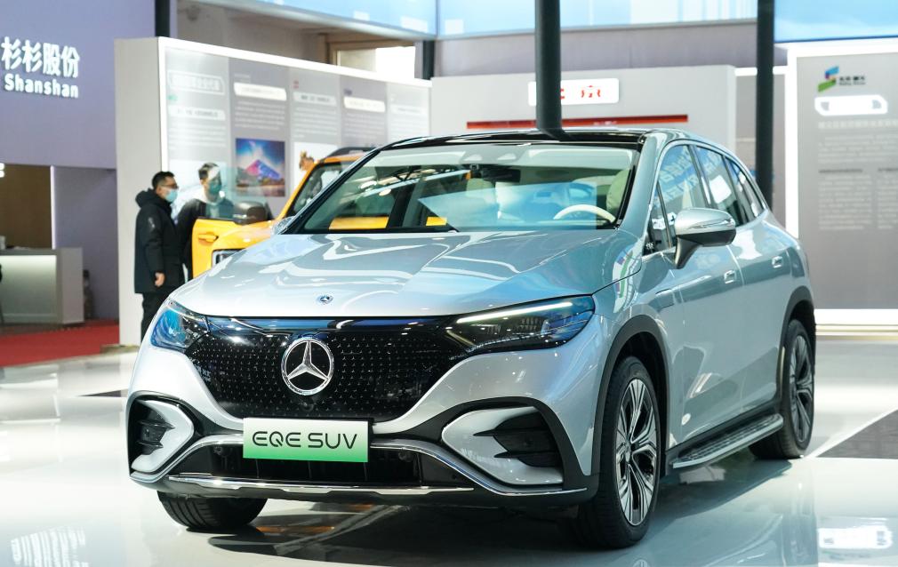2023年11月30日在北京舉辦的首屆中國國際供應(yīng)鏈促進博覽會智能汽車鏈展區(qū)拍攝的奔馳EQE SUV。新華社記者任超攝
