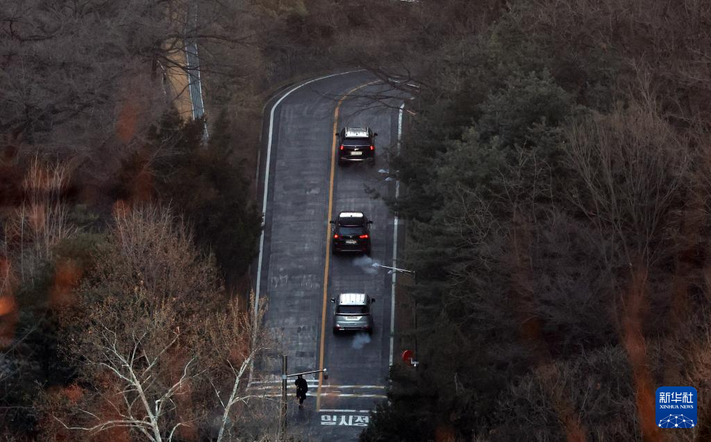 1月3日上午,韓國(guó)高級(jí)公職人員犯罪調(diào)查處工作人員乘坐的車輛駛向首爾龍山區(qū)漢南洞的總統(tǒng)官邸。新華社/紐西斯通訊社