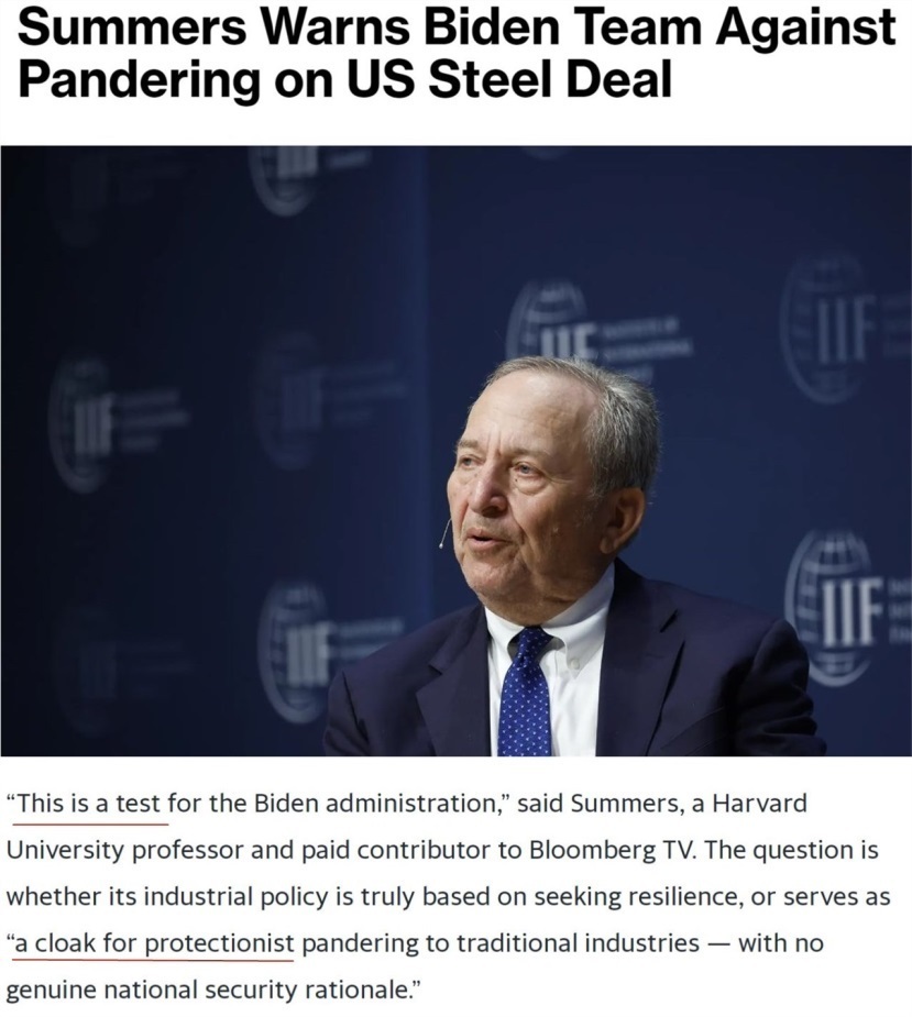 早在去年收購案推進(jìn)過程中,美國前財(cái)政部長勞倫斯·薩默斯就曾表態(tài)認(rèn)為,日鐵收購美鋼并不會構(gòu)成“國家安全風(fēng)險(xiǎn)”。