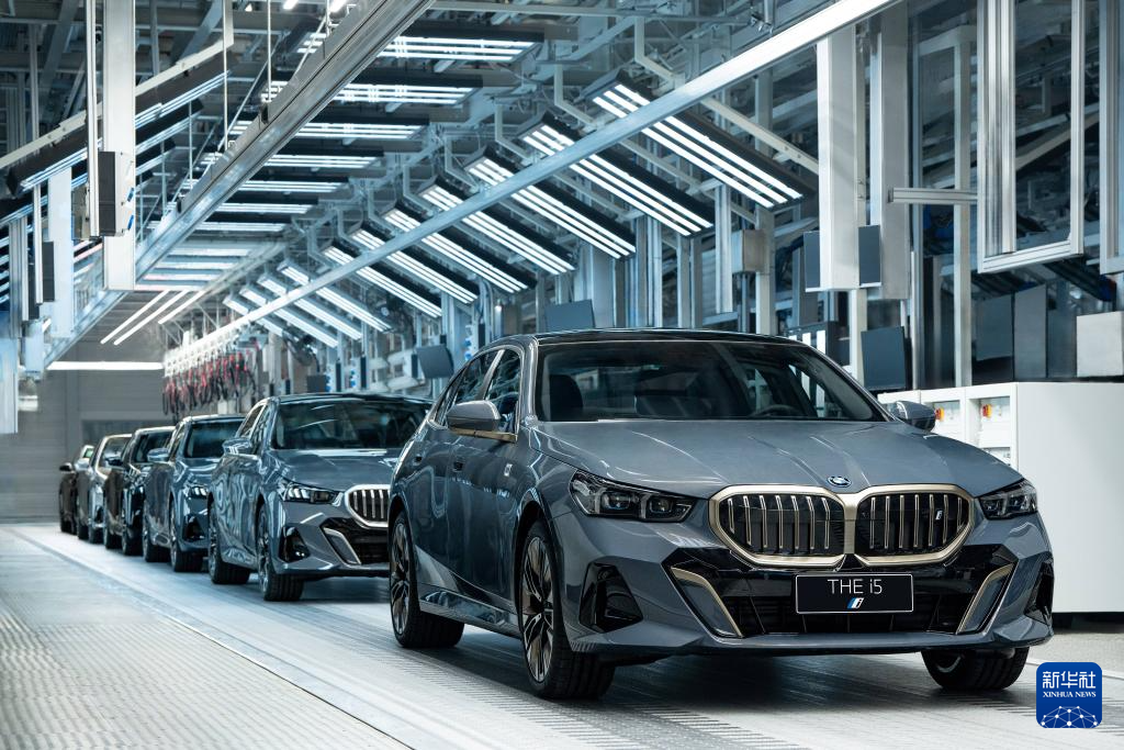 寶馬i5純電動汽車從位于遼寧的大東工廠下線(2024年1月8日攝)。新華社發(fā)(寶馬集團(tuán)供圖)