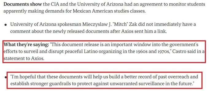 此外,中情局還試圖密切監(jiān)控亞利桑那州、加利福尼亞州和科羅拉多州的墨西哥裔美國學(xué)生活動人士,甚至讓臥底特工滲透到學(xué)生團體中。