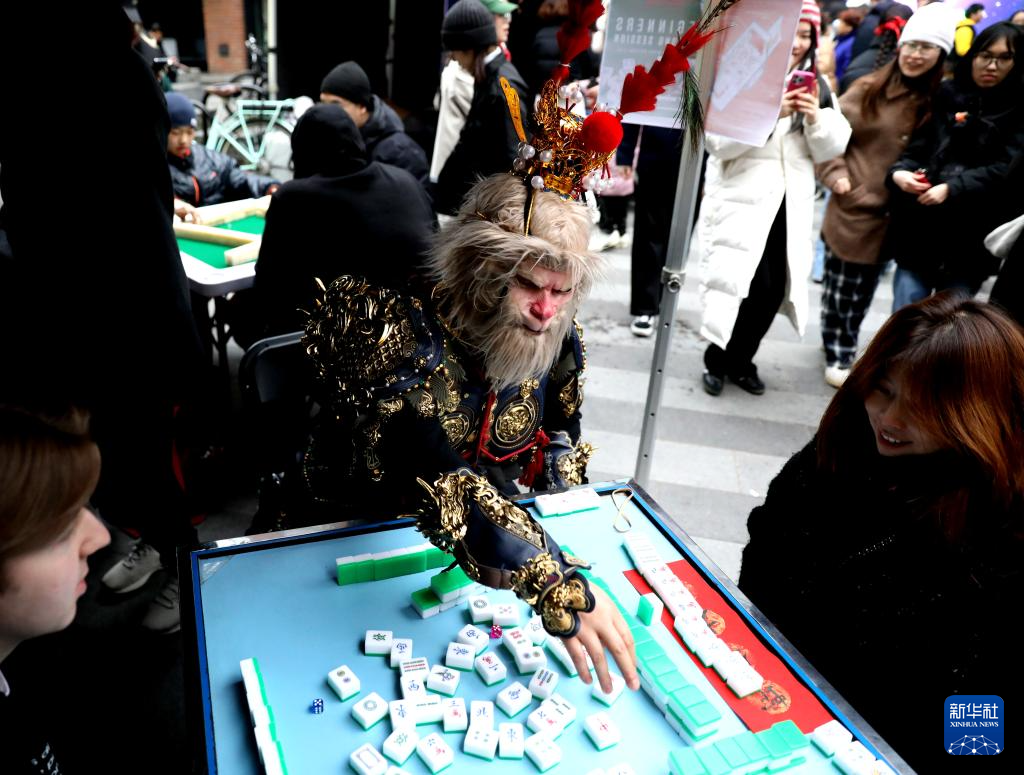 今年,倫敦卡姆登集市首次舉辦了中國(guó)春節(jié)慶典活動(dòng)。喜慶的春節(jié)燈飾高高懸掛,在微風(fēng)中輕輕搖曳;空氣中彌漫著中式點(diǎn)心的香氣,令人垂涎欲滴。人群中,偶爾可見(jiàn)漢服衣袂翩然掠過(guò),許多人手中還拿著紅色的燈籠和“?!弊帧T趹c典活動(dòng)上,當(dāng)?shù)厥忻裾淠荨っ谞栁值乱贿吅爸芭觥?,一邊開(kāi)心地將麻將桌上的“南風(fēng)”牌收到面前。她不僅自己打得得心應(yīng)手,還不時(shí)給身邊的新手講解規(guī)則。