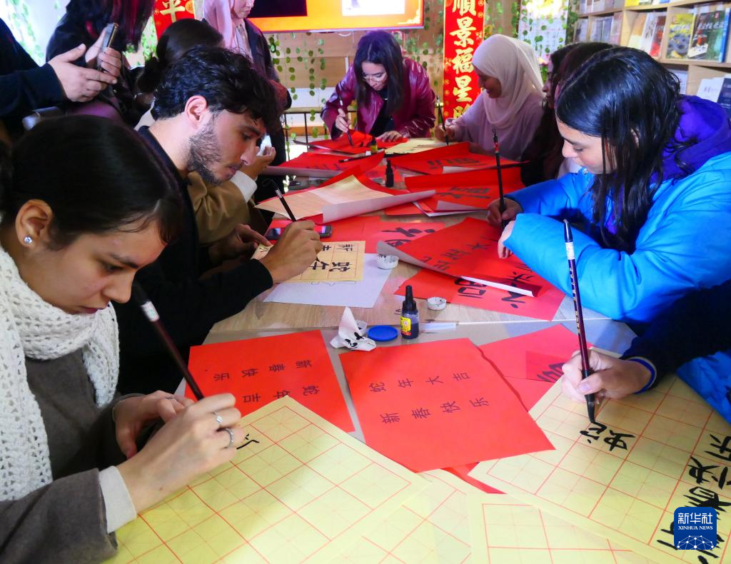 春節(jié)期間,突尼斯東方知識(shí)書(shū)店舉行了春節(jié)相關(guān)文化活動(dòng),參與者通過(guò)觀看視頻短片、有獎(jiǎng)問(wèn)答、寫(xiě)福字等活動(dòng)了解中國(guó)春節(jié)常識(shí)并親身體會(huì)中國(guó)年味。突尼斯迦太基大學(xué)高等語(yǔ)言學(xué)院中文專(zhuān)業(yè)學(xué)生興致勃勃地演唱了《月亮代表我的心》等中文歌曲。