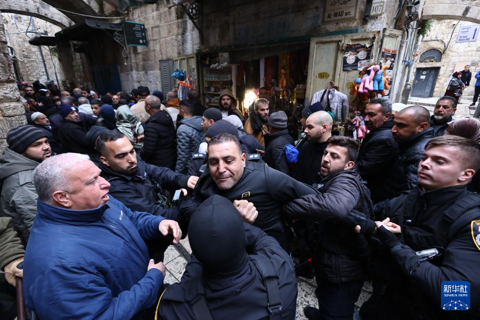 3月7日,在耶路撒冷老城,人們與警察發(fā)生沖突。新華社發(fā)(賈馬爾·阿瓦德攝)
