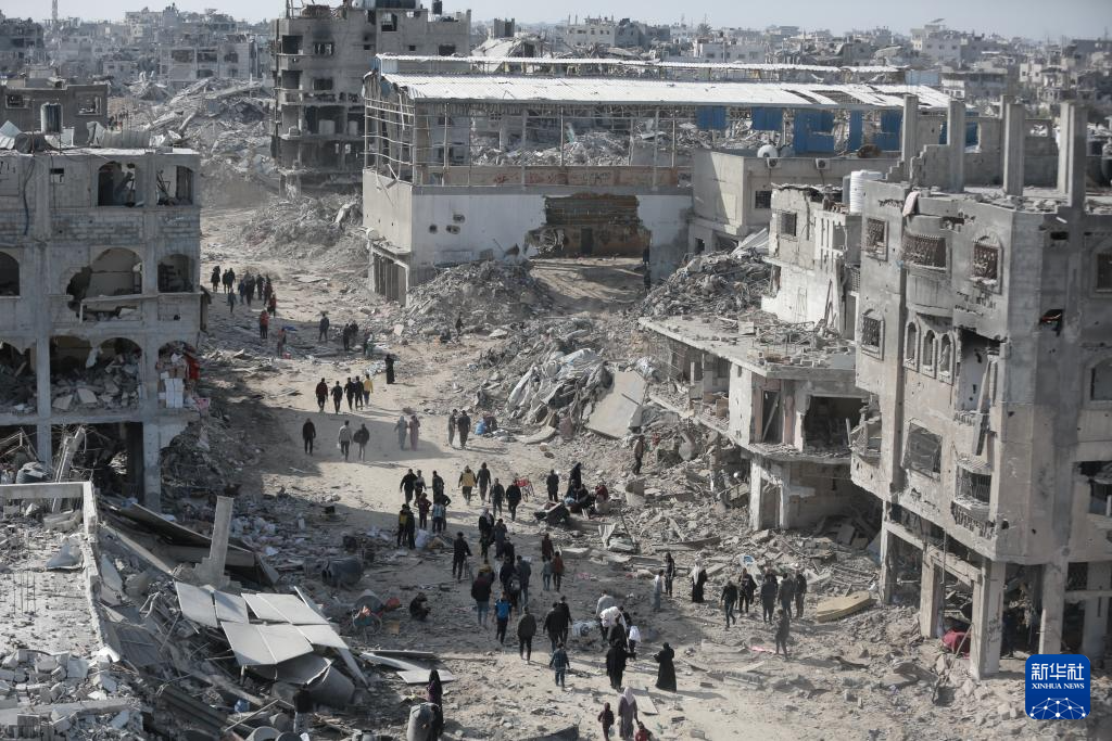 1月19日,巴勒斯坦人走在加沙地帶杰巴利耶難民營。新華社發(fā)(阿卜杜勒拉赫曼·薩拉馬攝)