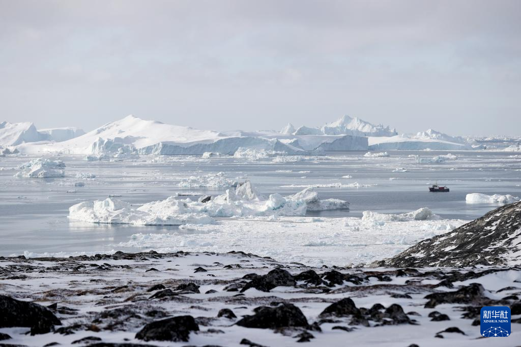 這是3月22日在丹麥自治領(lǐng)地格陵蘭島迪斯科灣拍攝的冰山。新華社記者 趙丁喆 攝