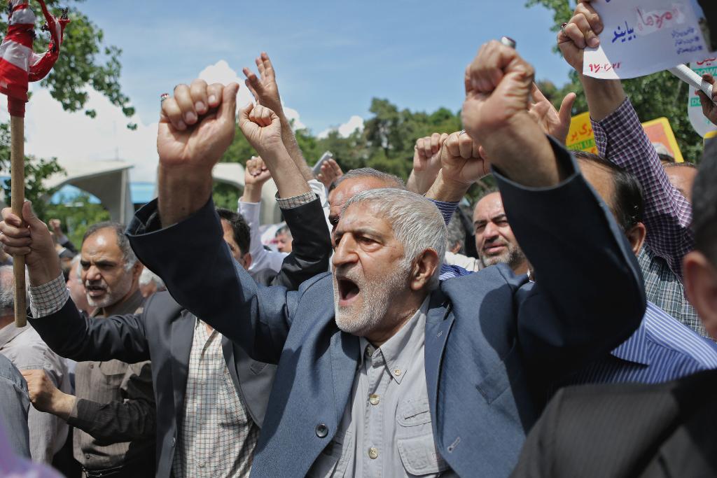 2018年5月11日,在伊朗首都德黑蘭,民眾抗議美國(guó)退出伊核協(xié)議。新華社發(fā)(哈拉比薩茲攝)