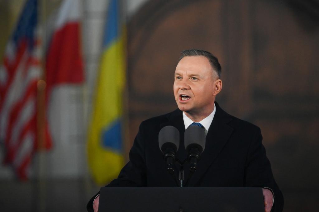 2023年2月21日,波蘭總統(tǒng)杜達在華沙發(fā)表講話。新華社發(fā)(阿列克西攝)