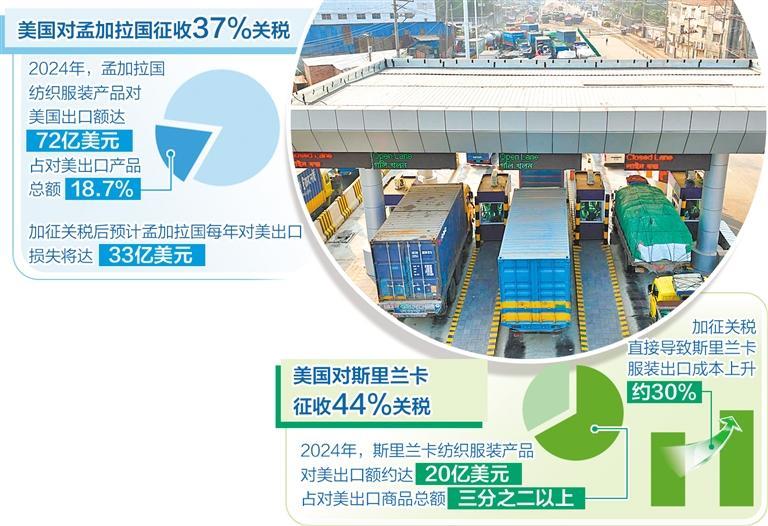 美國(guó)近期實(shí)施的所謂“對(duì)等關(guān)稅”將南亞7國(guó)中的4個(gè)國(guó)家納入制裁范圍。其中,美國(guó)對(duì)孟加拉國(guó)產(chǎn)品征收37%的關(guān)稅,對(duì)斯里蘭卡產(chǎn)品征收的關(guān)稅稅率更是提高至44%。孟加拉國(guó)目前仍是聯(lián)合國(guó)認(rèn)定的最不發(fā)達(dá)國(guó)家之一,經(jīng)濟(jì)發(fā)展水平相對(duì)較低;斯里蘭卡在2022年因經(jīng)濟(jì)危機(jī)宣布破產(chǎn),目前正處于經(jīng)濟(jì)復(fù)蘇的關(guān)鍵時(shí)期。美國(guó)的關(guān)稅霸凌政策讓兩個(gè)相對(duì)脆弱的南亞中小國(guó)家貿(mào)易環(huán)境更加惡化,經(jīng)濟(jì)發(fā)展面臨嚴(yán)峻挑戰(zhàn)。