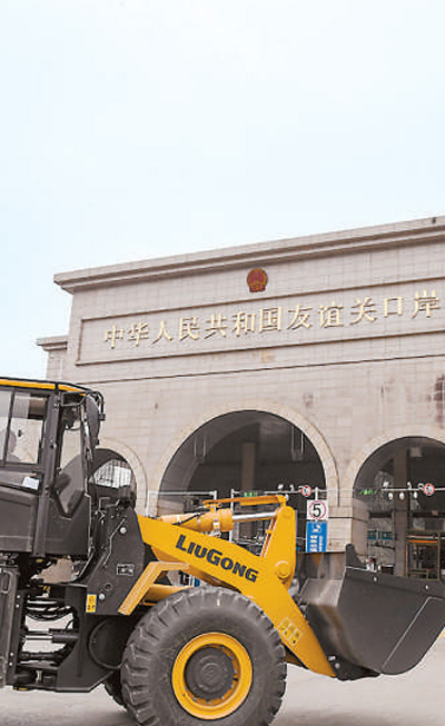 在廣西憑祥友誼關(guān)口岸,一批裝載機駛過口岸出口越南。新華社記者 曹祎銘攝