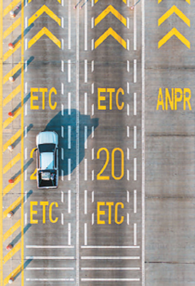 汽車駛過柬埔寨金港高速金邊收費站(無人機照片)。張金加攝(新華社發(fā))