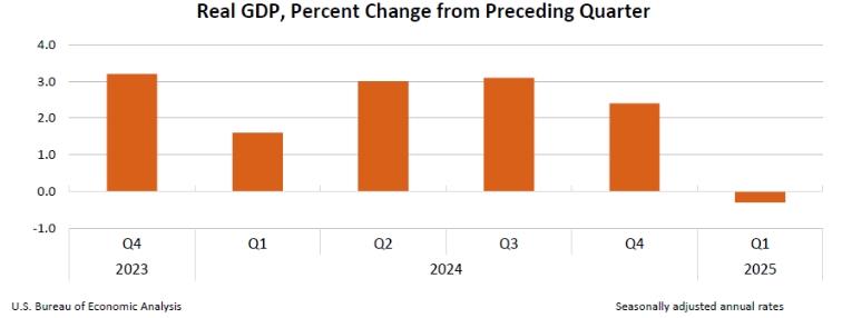 4月30日,美國(guó)商務(wù)部公布了2025年美國(guó)一季度經(jīng)濟(jì)數(shù)據(jù),美國(guó)一季度國(guó)內(nèi)生產(chǎn)總值環(huán)比(按年率計(jì)算)萎縮0.3%,為三年來首次負(fù)增長(zhǎng)。