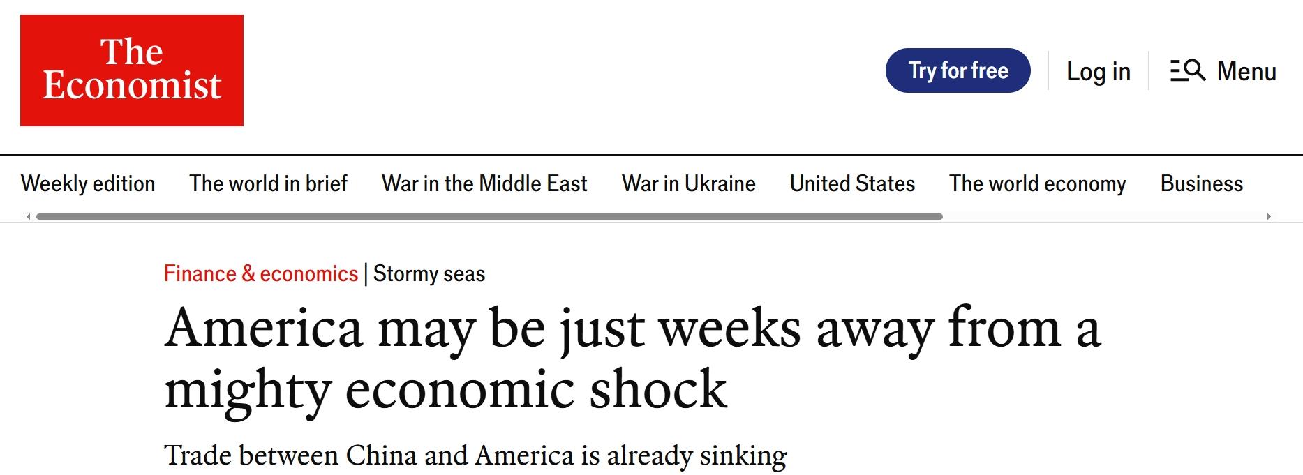 《經(jīng)濟(jì)學(xué)人》:美國(guó)離一場(chǎng)巨大的經(jīng)濟(jì)沖擊僅剩幾周時(shí)間