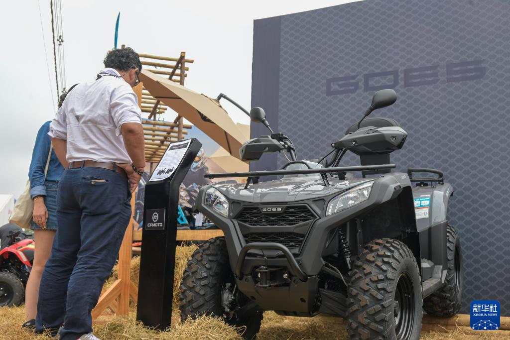 4月29日,在巴西圣保羅州里貝朗普雷圖市舉行的2025年巴西農(nóng)業(yè)科技展上,參觀者觀看春風(fēng)動(dòng)力展示的全地形車。新華社記者 陳昊佺 攝