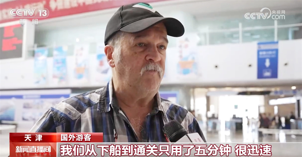 國(guó)外游客稱(chēng):“這是我第二次來(lái)中國(guó),每個(gè)人都很友善。我們來(lái)是為了度假,我們從下船到通關(guān)只用了五分鐘,很迅速。”