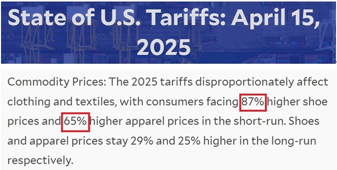 耶魯大學(xué)預(yù)算實(shí)驗(yàn)室預(yù)測(cè),未來(lái)一年,美國(guó)服裝價(jià)格可能上漲65%,鞋類(lèi)價(jià)格漲幅可能高達(dá)87%。