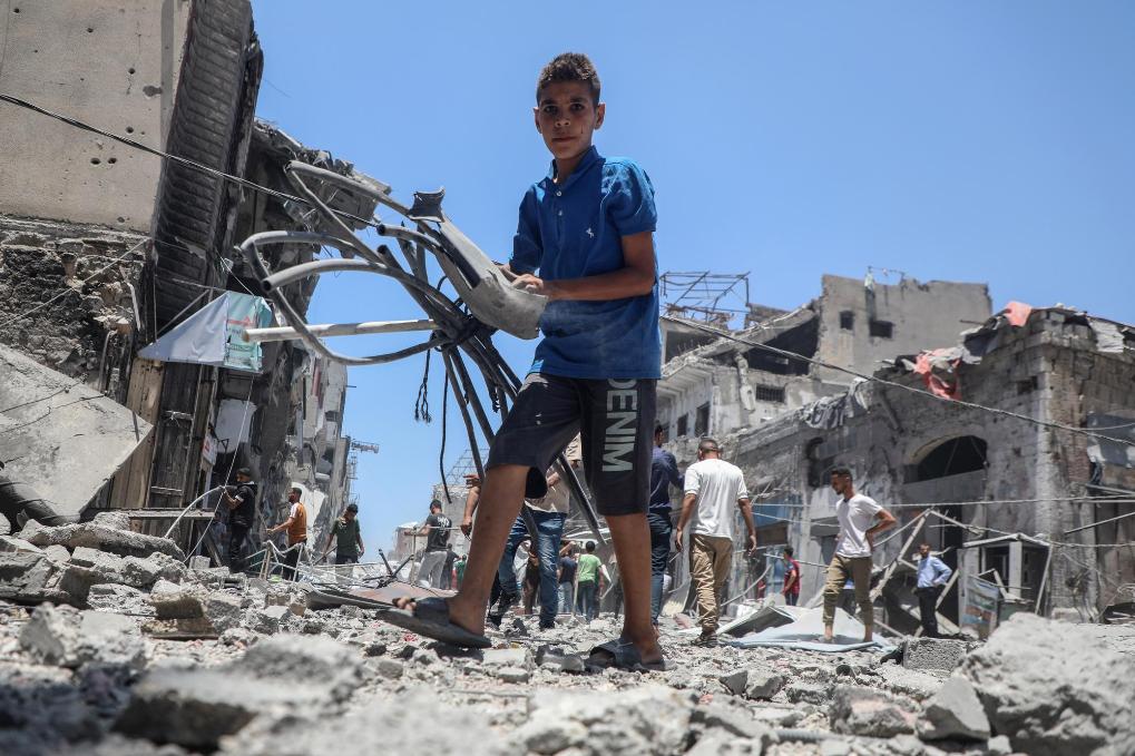 5月31日,人們在加沙城查看遭以軍襲擊后的廢墟。新華社發(fā)(里澤克·阿卜杜勒賈瓦德攝)