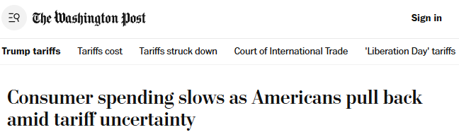 《華盛頓郵報》報道稱,由于美國政府的貿(mào)易戰(zhàn)持續(xù)引發(fā)經(jīng)濟不確定性,目睹關(guān)稅風(fēng)波的美國人已開始縮減開支。新數(shù)據(jù)顯示,美國人購買汽車和服裝時愈發(fā)謹慎。美國經(jīng)濟分析局5月30日發(fā)布的數(shù)據(jù)顯示,本就顯疲軟的消費支出增長在4月顯著放緩,因為更多家庭在觀望關(guān)稅相關(guān)的不確定性將如何發(fā)展。
