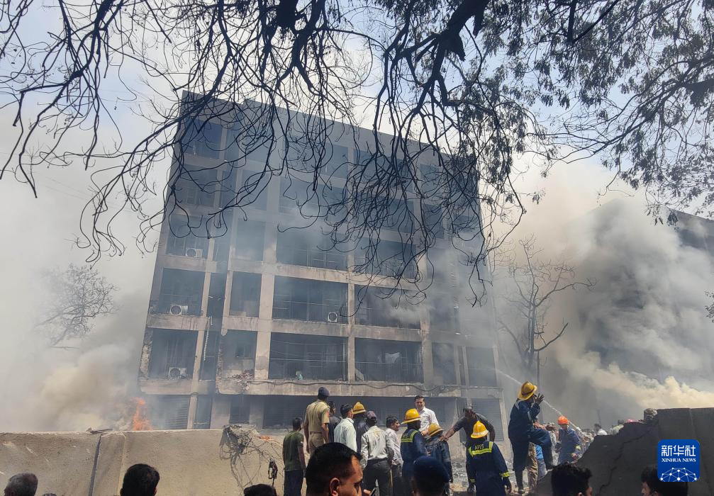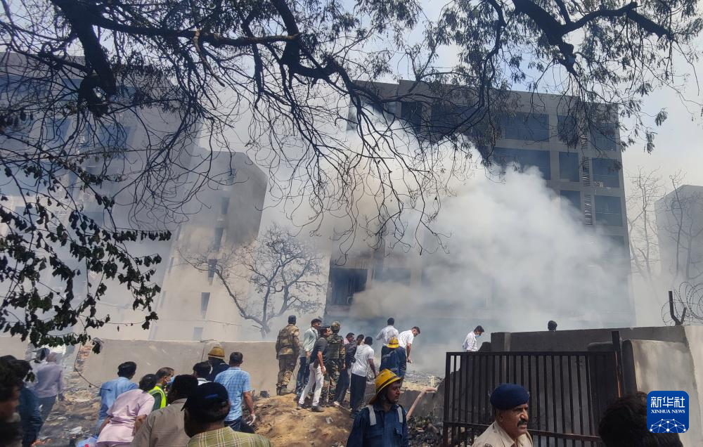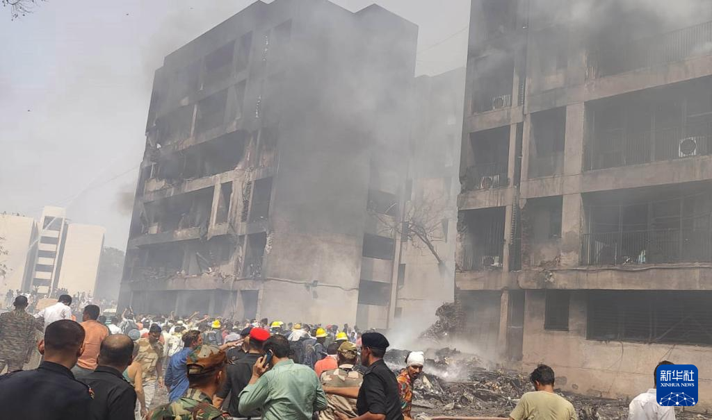 6月12日,在印度古吉拉特邦艾哈邁達巴德,人們在客機失事現(xiàn)場進行救援。新華社/印度聯(lián)合新聞社
