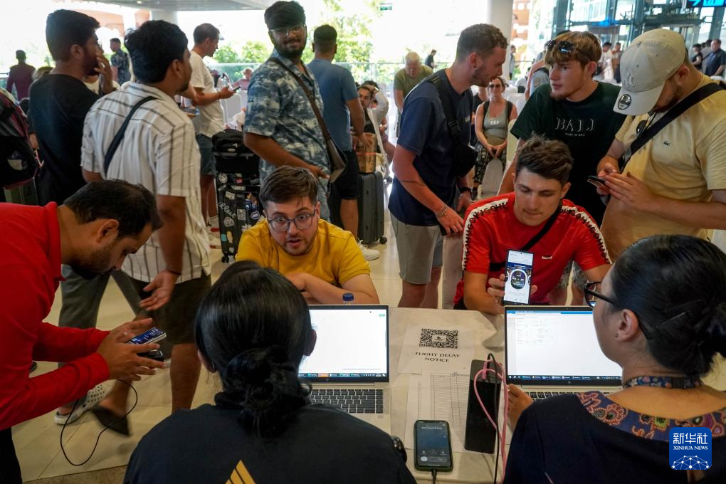 6月18日,在印度尼西亞巴厘島伍拉萊國際機場,由于勒沃托比-拉基拉基火山噴發(fā)導(dǎo)致航班延誤的乘客們詢問信息。新華社發(fā)(比辛拉西攝)