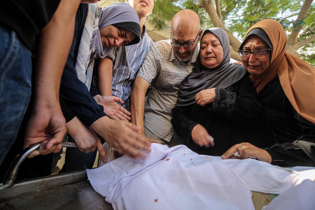 7月23日,人們在加沙城一所醫(yī)院悼念遇難者。新華社發(fā)(里澤克·阿卜杜勒賈瓦德攝)