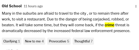 《華盛頓郵報(bào)》這篇名為“這個(gè)城市死了”的文章引發(fā)美國(guó)人激烈討論,讀者們?cè)谠u(píng)論區(qū)留下了890多條評(píng)論,有批評(píng)軍隊(duì)上街的,有支持打擊犯罪的,也有吐槽當(dāng)?shù)仫埖甑摹?/p>