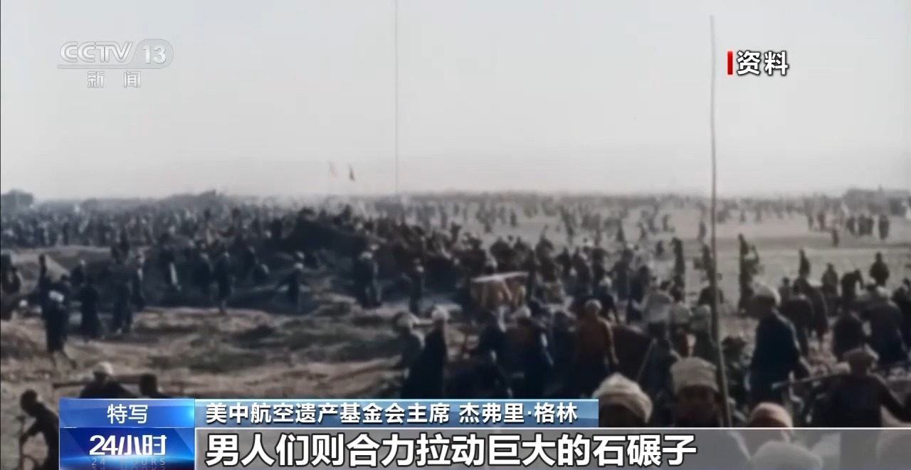 美中航空遺產(chǎn)基金會主席 杰弗里·格林:婦女們背上背著孩子,坐在地上把大石塊敲成小石子;孩子們再把小石子撿到指定地點;男人們則合力拉動巨大的石碾子,有時候要100個人才能拉動一臺10噸重的石碾子,就為了把跑道壓平整。無論是寒冬還是酷暑,婦女們敲碎的每一塊石頭,都是在為機(jī)場出力,為飛機(jī)起降創(chuàng)造條件,讓美國飛行員能順利升空抗擊日軍。這背后是一種信念:他們所做的一切都在為勝利搭建基礎(chǔ)。