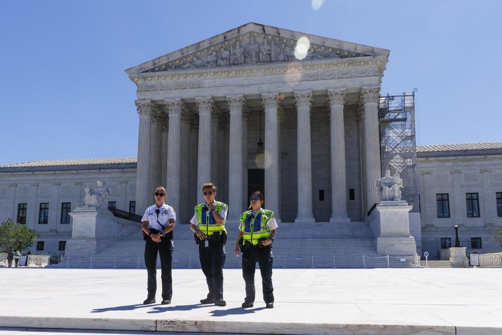 2024年7月1日,警察在美國首都華盛頓的美國聯(lián)邦最高法院前執(zhí)勤。新華社發(fā)(亞倫攝)