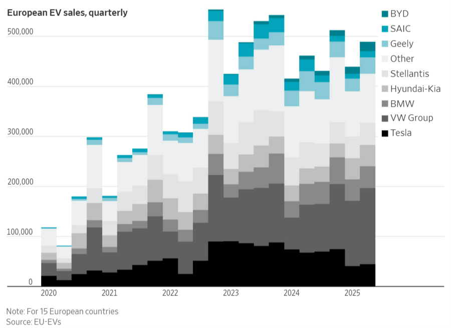《華爾街日?qǐng)?bào)》9月17日發(fā)表文章稱,在電動(dòng)汽車領(lǐng)域,“中國(guó)制造”的足跡在不斷擴(kuò)大,目前已占全球電動(dòng)汽車銷量的一半以上。