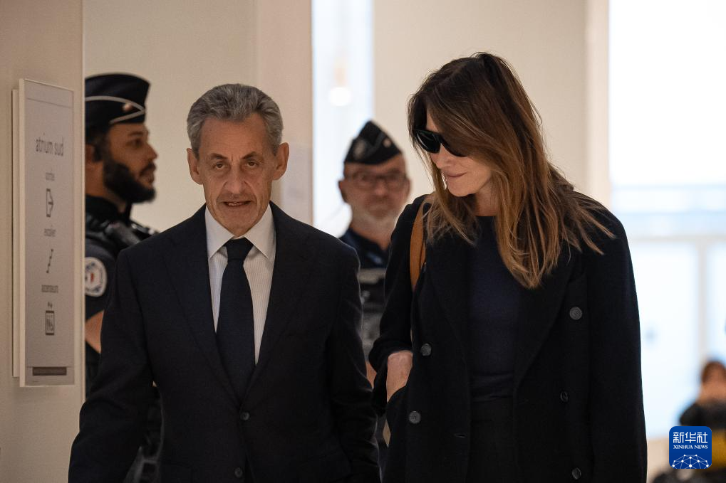 9月25日,法國前總統(tǒng)薩科齊和夫人布呂尼抵達巴黎一家法院。新華社發(fā)(奧雷利安·莫里薩爾攝)