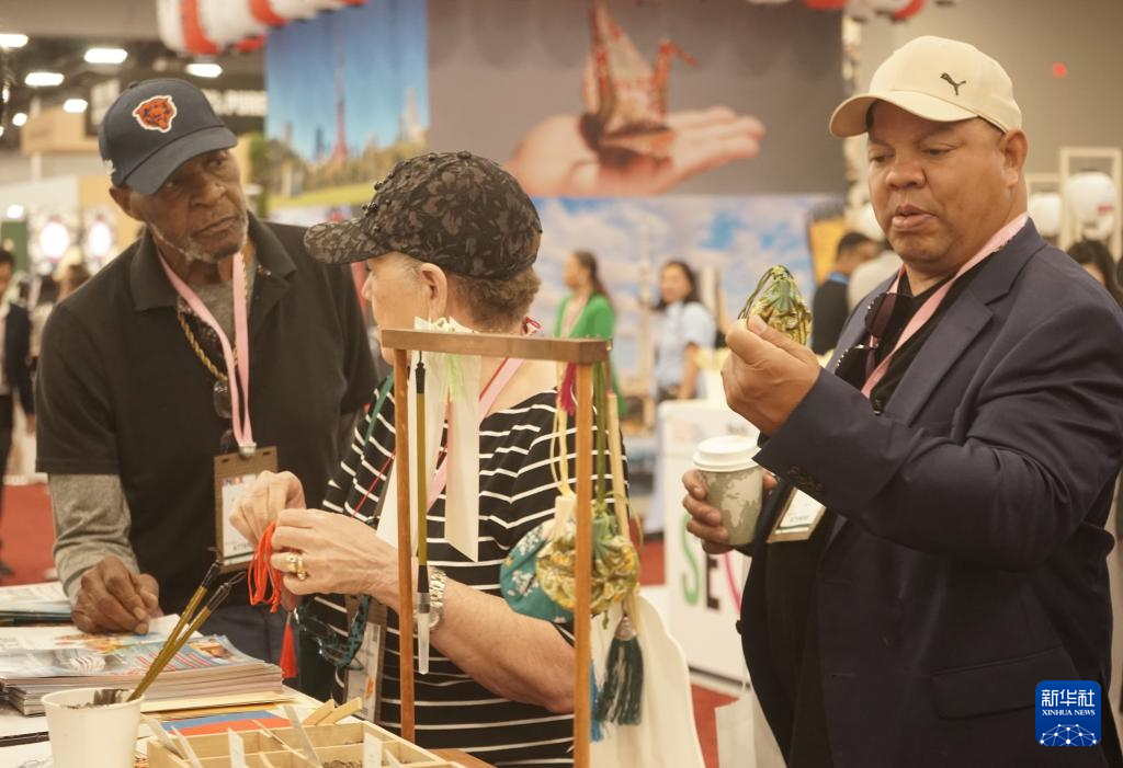 10月8日,在美國拉斯維加斯,參觀者在2025年美國國際會議與獎(jiǎng)勵(lì)旅游展的中國展區(qū)傾聽講解。 新華社發(fā)(曾慧攝)