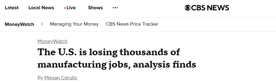 現(xiàn)實(shí)數(shù)據(jù)也為這一觀點(diǎn)提供了有力佐證。美國(guó)哥倫比亞廣播新聞網(wǎng)站(CBS News)報(bào)道稱,8月份美國(guó)制造業(yè)崗位削減了1.2萬(wàn)個(gè),4月份以來(lái)已累計(jì)減少4.2萬(wàn)個(gè)崗位。美國(guó)進(jìn)步中心(CAP)直指原因就是特朗普政府大幅加征新關(guān)稅、強(qiáng)硬的移民政策和“大而美”法案。
