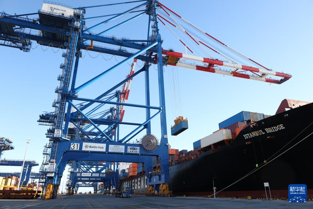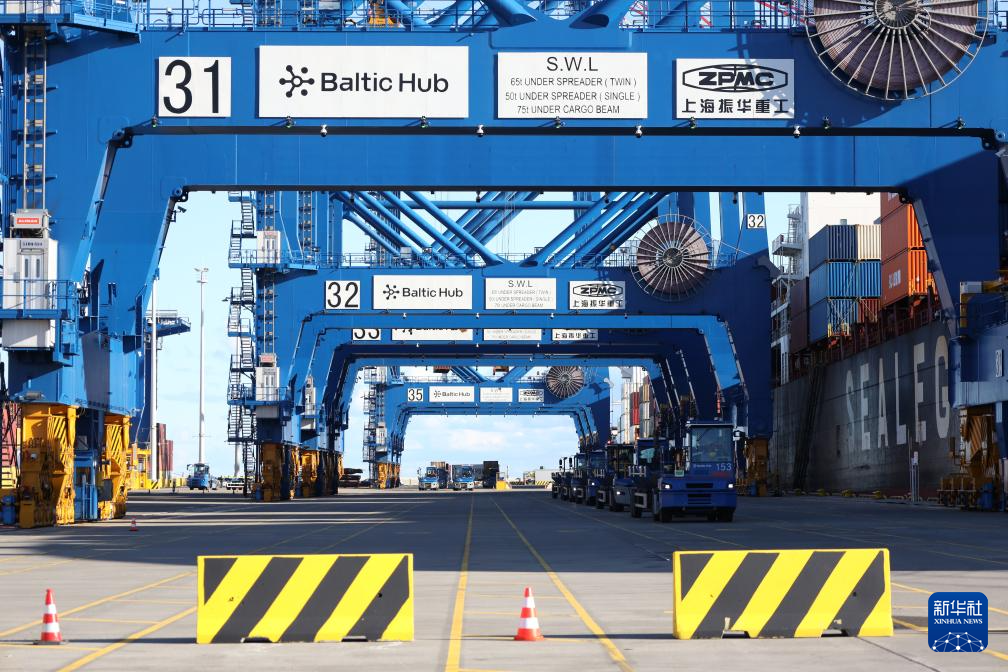 10月19日,在波蘭北部格但斯克港,從中國寧波舟山港出發(fā)的中歐北極快航航線首艘貨船進(jìn)行裝卸工作。新華社記者 崔力 攝