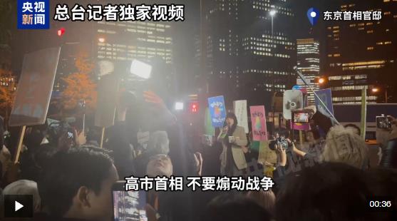 當(dāng)?shù)貢r間21日晚,數(shù)百名日本民眾聚集在位于東京的首相官邸前,自發(fā)進行集會,要求日本首相高市早苗撤回涉臺錯誤言論。