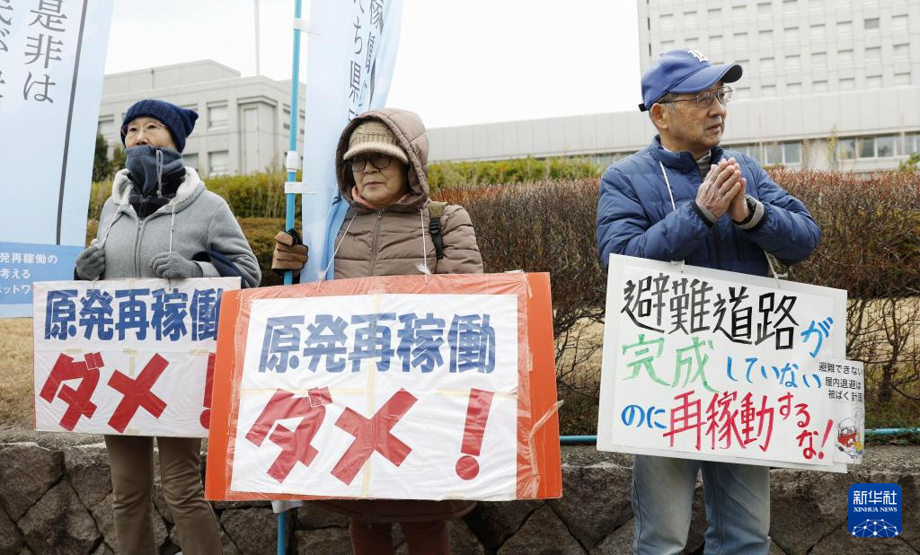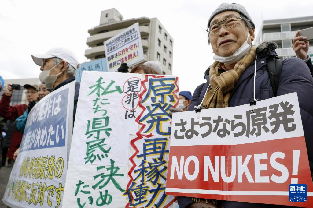 12月22日,民眾在日本新潟縣抗議重啟柏崎刈羽核電站。新華社/共同社