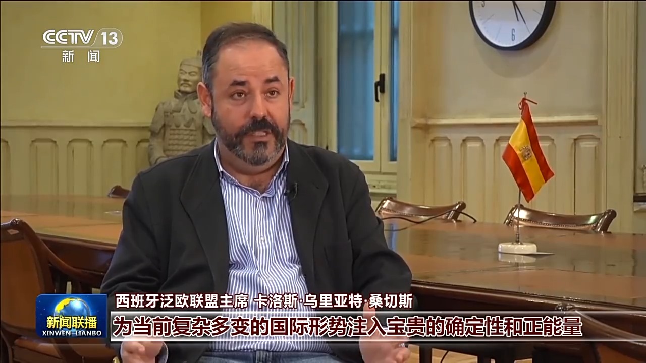 西班牙泛歐聯(lián)盟主席 卡洛斯·烏里亞特·桑切斯:習近平主席發(fā)表的新年賀詞為當前復雜多變的國際形勢注入寶貴的確定性和正能量,習主席提出的一系列全球倡議立足于造福全人類。中國還積極應對氣候變化,在可持續(xù)發(fā)展方面為世界提供了重要借鑒。中國堅持合作共贏的理念,讓中國的發(fā)展成果惠及更多國家和人民。