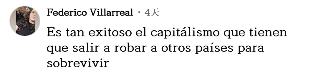 網(wǎng)友費(fèi)德里科·比利亞雷亞爾不禁感慨道:“資本主義如此成功,以至于他們必須去搶劫其他國(guó)家才能生存下去。”
