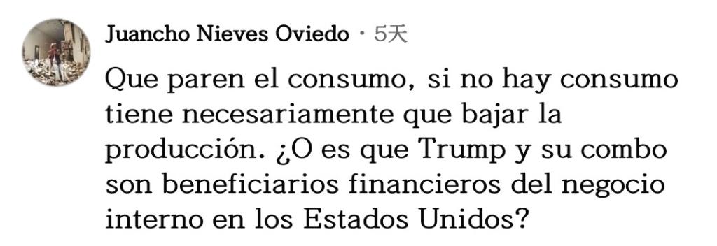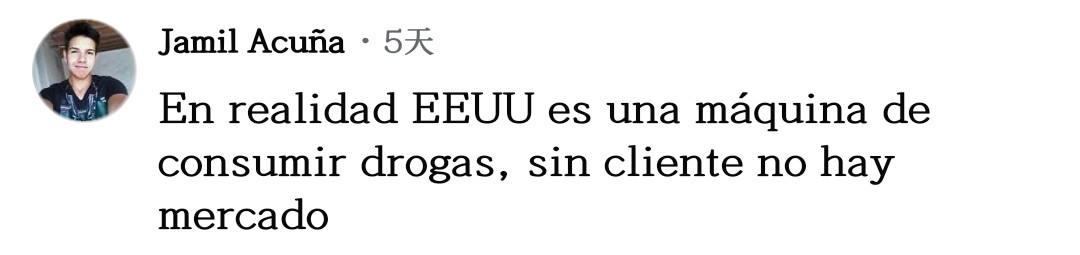 網(wǎng)友胡安喬·奧維多一針見血:“停止(毒品)消費(fèi)吧,如果沒人消費(fèi),生產(chǎn)必然下降。莫非特朗普和他的團(tuán)隊(duì)是美國(guó)國(guó)內(nèi)毒品生意的受益者?”