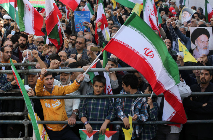 2025年11月4日,民眾在伊朗首都德黑蘭參加反美反以集會。當(dāng)天,伊朗多地民眾舉行集會,譴責(zé)美國霸權(quán)和以色列的侵略行為。新華社發(fā)