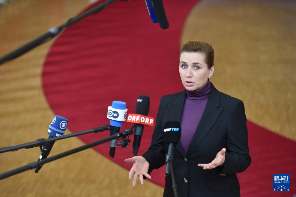 1月22日,在比利時布魯塞爾,丹麥?zhǔn)紫喔ダ诐衫锟松瓍⒓託W盟緊急峰會前強(qiáng)調(diào),丹麥?zhǔn)侵鳈?quán)國家,“主權(quán)問題不容談判”。新華社發(fā)(歐盟供圖)