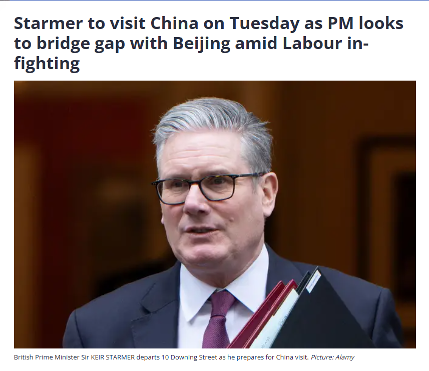 應(yīng)國(guó)務(wù)院總理李強(qiáng)邀請(qǐng),英國(guó)首相斯塔默將于1月28日至31日對(duì)中國(guó)進(jìn)行正式訪問。歐洲媒體對(duì)此給予強(qiáng)烈關(guān)注。多家歐洲媒體報(bào)道稱,這是2018年以來,英國(guó)首相首次對(duì)中國(guó)的訪問。