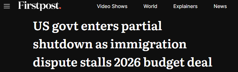 盡管美國參議院通過了聯(lián)邦政府多個部門剩余財(cái)年的撥款法案,暫時避免了政府長期“停擺”,但由于眾議院因既定休會安排,無法在預(yù)算授權(quán)到期前完成表決,聯(lián)邦政府仍于當(dāng)?shù)貢r間1月31日零時進(jìn)入技術(shù)性、部分“停擺”狀態(tài)。