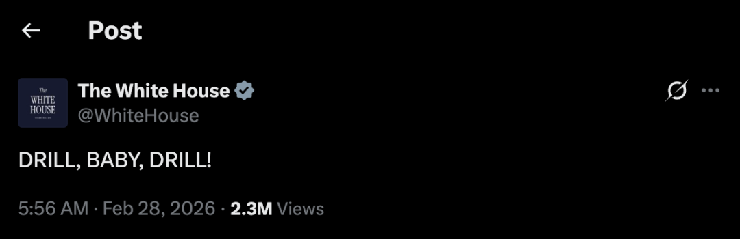 2月28日,美國和以色列宣布,對伊朗發(fā)動聯合軍事行動。同時,白宮的社交媒體賬號更新了一條動態(tài),只有簡短的一句話: