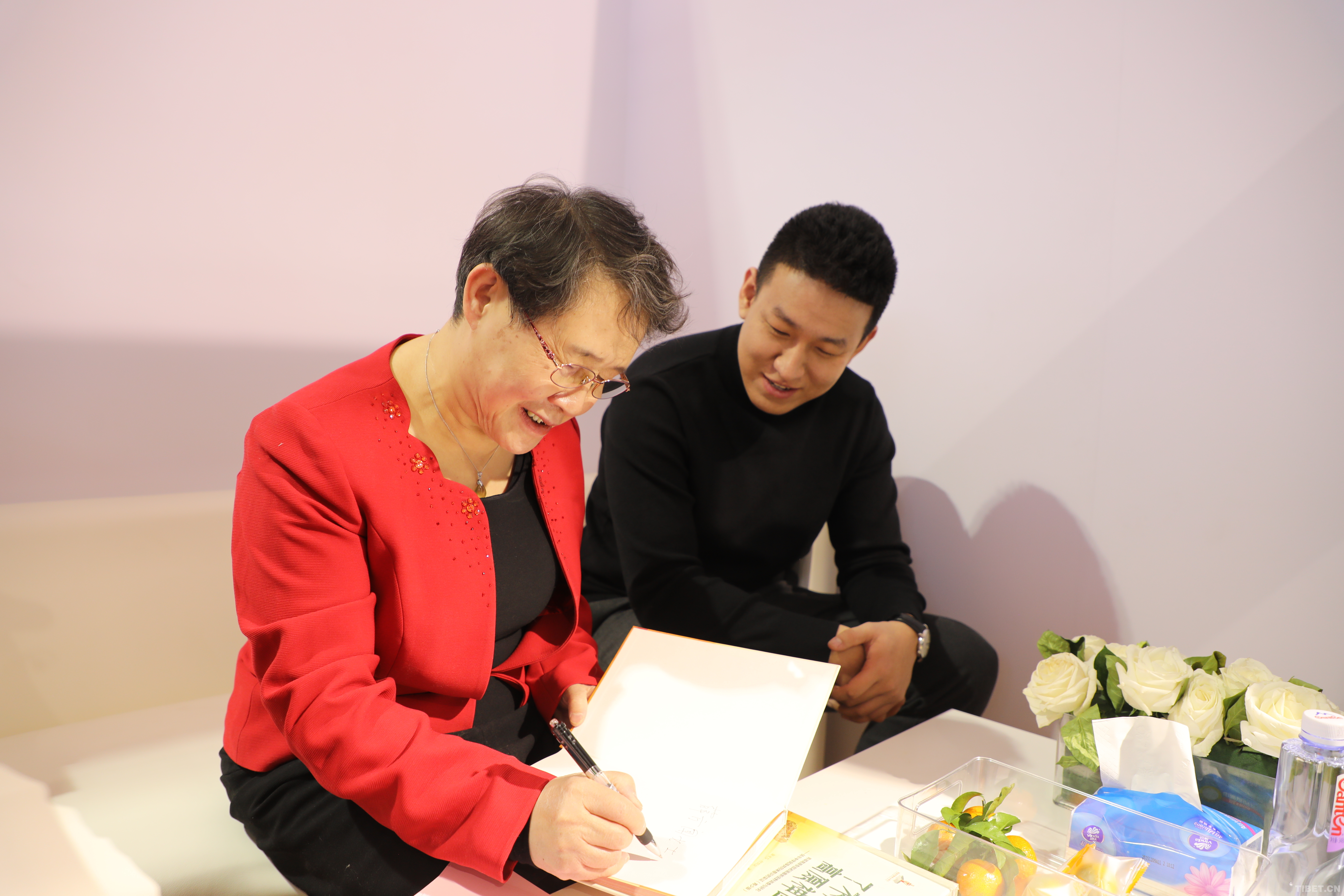 圖為《了不起的高原神畫》作者張亞莎(左)和任潤(rùn)良(右) 攝影:王茜