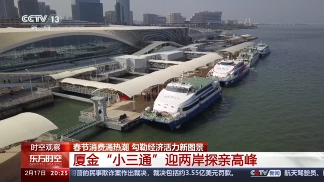 據(jù)廈門海關(guān)統(tǒng)計(jì),春運(yùn)以來(lái),海關(guān)累計(jì)監(jiān)管廈金“小三通”進(jìn)出境船舶344航次,同比增長(zhǎng)6.8倍,進(jìn)出境人員7萬(wàn)人次,同比增長(zhǎng)23.9倍。