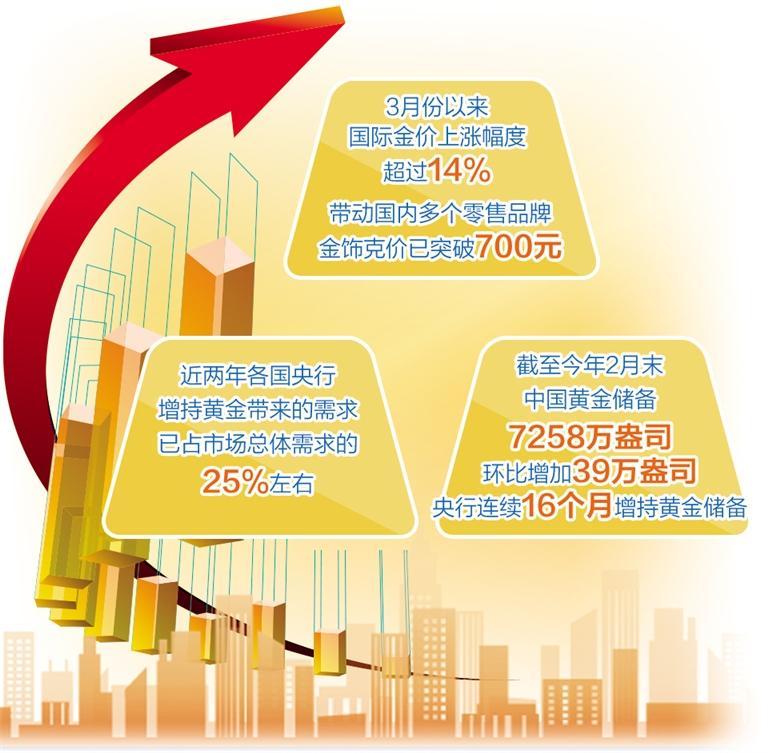 市場分析人士認(rèn)為,今年以來,在美聯(lián)儲(chǔ)貨幣政策確定轉(zhuǎn)向的背景下,疊加近期地緣政治沖突激化,以及全球多國央行對黃金的持續(xù)需求,多因素共同推動(dòng)了國際金價(jià)的強(qiáng)勁上漲。