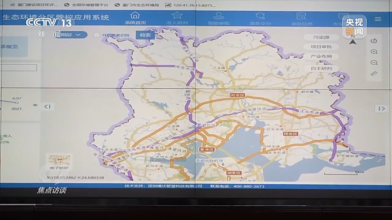 福建廈門市生態(tài)環(huán)境局環(huán)評處處長 詹源:我們在系統(tǒng)里面融入了國土空間、市政設施、產(chǎn)業(yè)布局以及生態(tài)環(huán)境,一共有207個矢量圖層,在這里面可以查看到空間信息、污水管網(wǎng)設置、產(chǎn)業(yè)布局規(guī)劃等信息。同時,我們還梳理了10萬多條準入條件,形成了分區(qū)管控的智慧內(nèi)核。