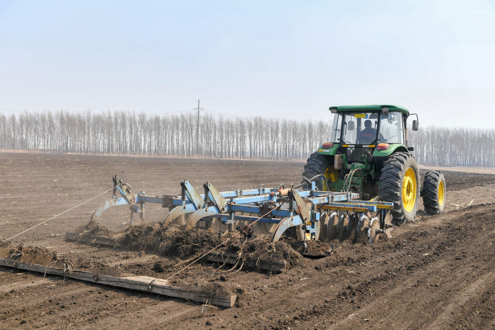 4月2日,在吉林省公主嶺市范家屯鎮(zhèn)乾程農(nóng)民專業(yè)合作社,農(nóng)民駕駛農(nóng)機(jī)整理耕地。