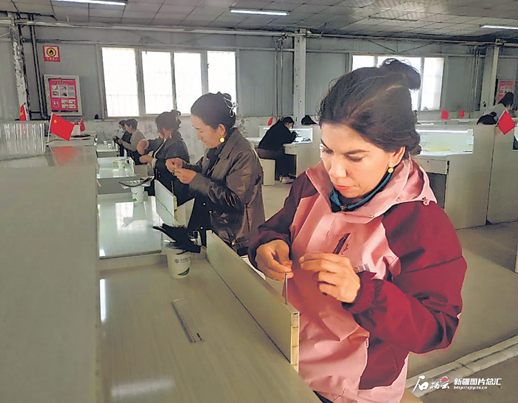 該公司負(fù)責(zé)人迪麗達(dá)爾·克依木說:“這個(gè)月我們有個(gè)100萬元的訂單,工人正加班加點(diǎn)生產(chǎn)?!?/p>